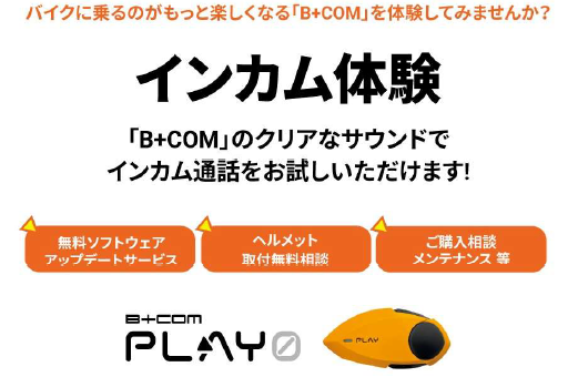 インカムで有名な『B+COM』、そのメーカーであるサイン・ハウス様の正規代理店スタッフがショールームにて直接、展示説明を行う販売会イベント開催いたします!!