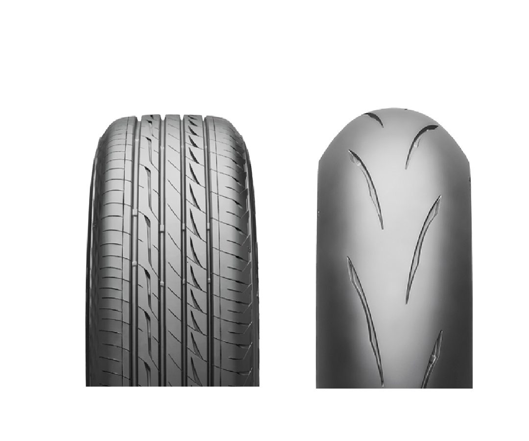 クルマはハンドルを切って舵角で曲がりますが、バイクは傾けて曲がります。だからバイクのタイヤは丸くなっています(当たり前ですが重要なので比較写真を掲載しました)。
