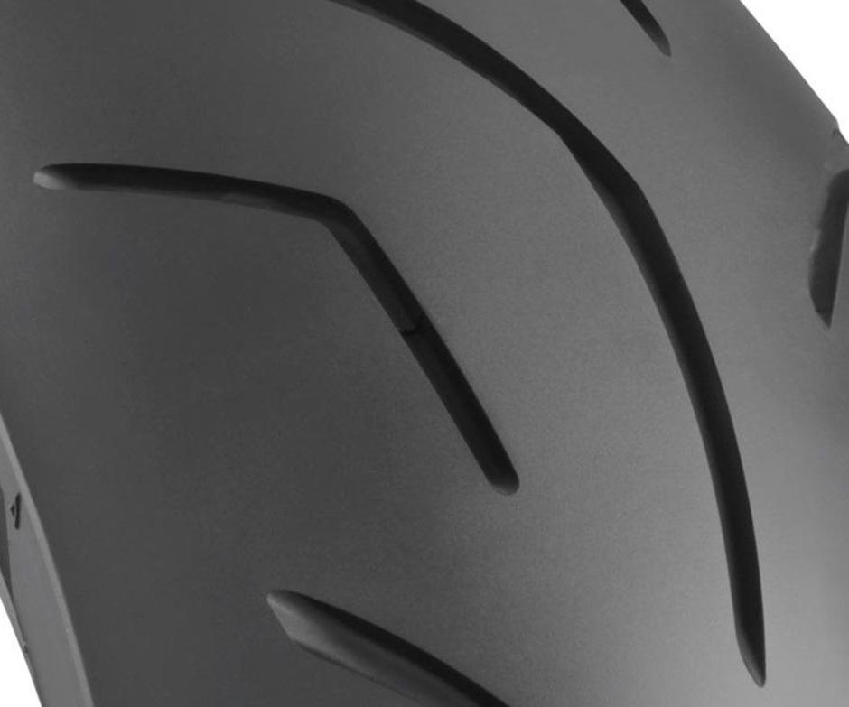 ここで何が言いたいか、と言いますと、フロントタイヤの溝の向きでタイヤが耐摩耗性能重視なのか、摩耗性を犠牲にしてドライグリップと排水性重視かをおおよそ、予測することができます。
