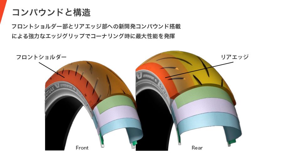 また、新しい挑戦として、トレッド部のサイド側がスリックタイヤのようになっています!これは新しいコンパウンドの開発でようやく実現できたそうです。