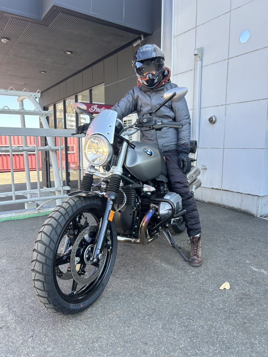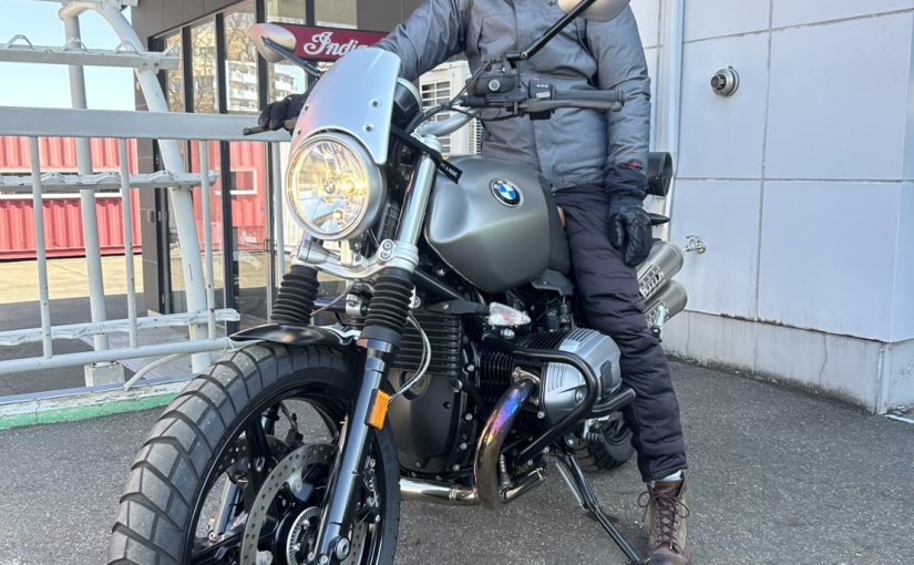 今回の車両『R nineT スクランブラー』ですが、決め手はやはり、落ち着いた感じで虹色に光が反射するスクリーンやミラー、それからエキパイです!
