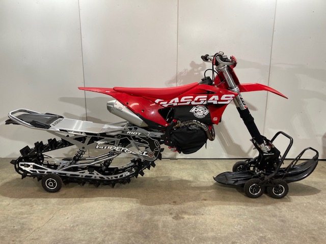 コメント | デモ車販売。車両は’23モデル。スノーバイクキットは’24モデルです。 移動用ドーリーは別売り。エンジン稼働時間12h。スノーバイクキットは2024モデルを装着。トラックは、120”x11.5”x2.5”。 エンジンジャケット・アルミハンドガード・ヒートガード・ネオプレーンフォークカバー付。 FITKITはFixed Strut。 |