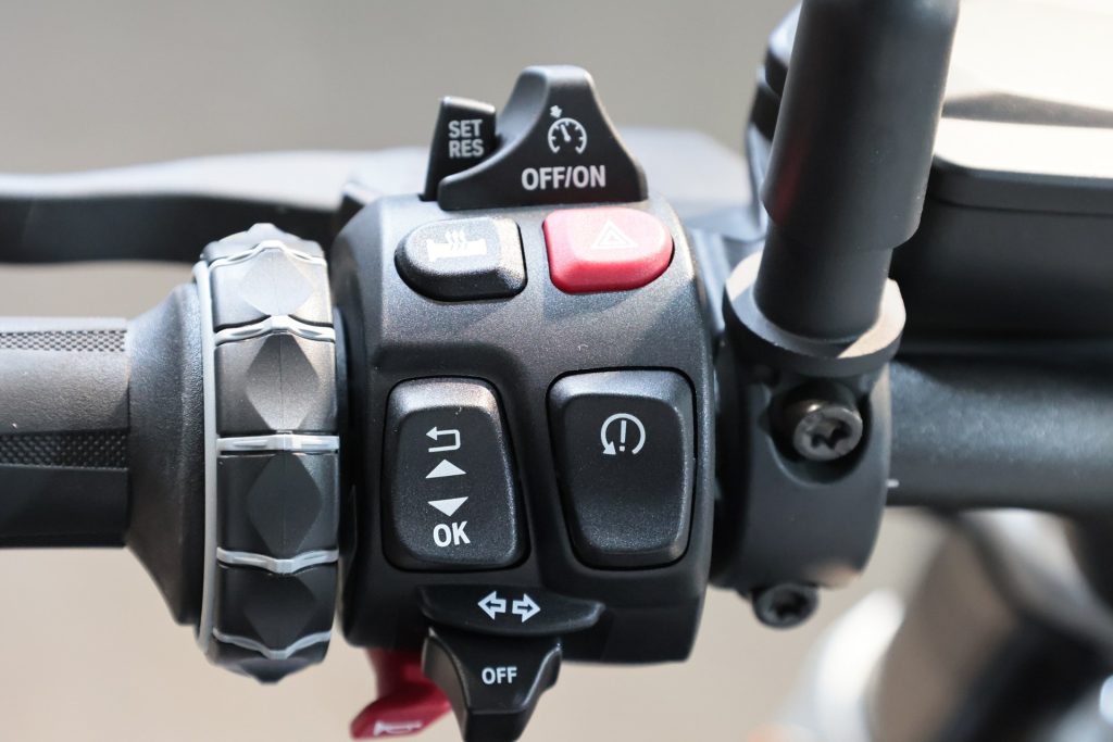 | コメント | ・コネクテッドライドコントロール ・ヒルスタートコントロール ・ギアシフトアシスタントプロ ・グリップヒーター ・クルーズコントロール ・デザインオプションエキゾーストパイプ ・調整式ブレーキ/クラッチレバー ・ABSプロ ・プリロード調整式リアサスペンション ・キーレスライド ・イモビライザー ・ライディングモード ・ダイナミックトラクションコントロール(DTC) ・ダイナミックブレーキライト ・LEDヘッドライト/ウインカー/テールライト ・デイタイムライディングライト ・12 V電源ソケット ・USBポート ・ETC2.0 |